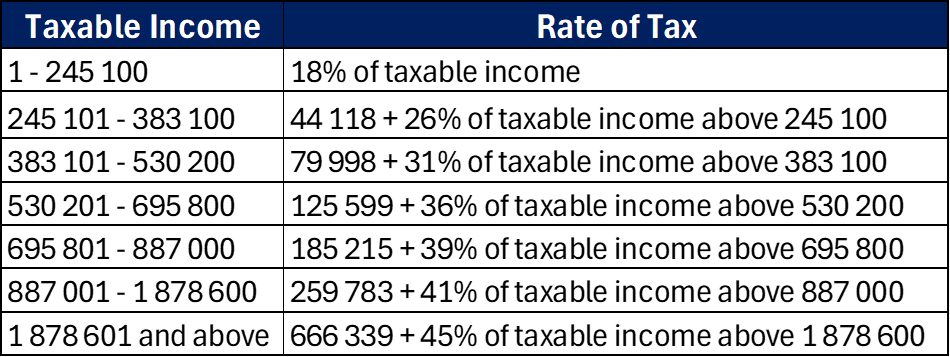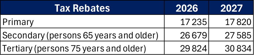 Personal income tax brackets and rebates are fully adjusted in line with inflation — protecting your take-home pay (below are the latest tables).